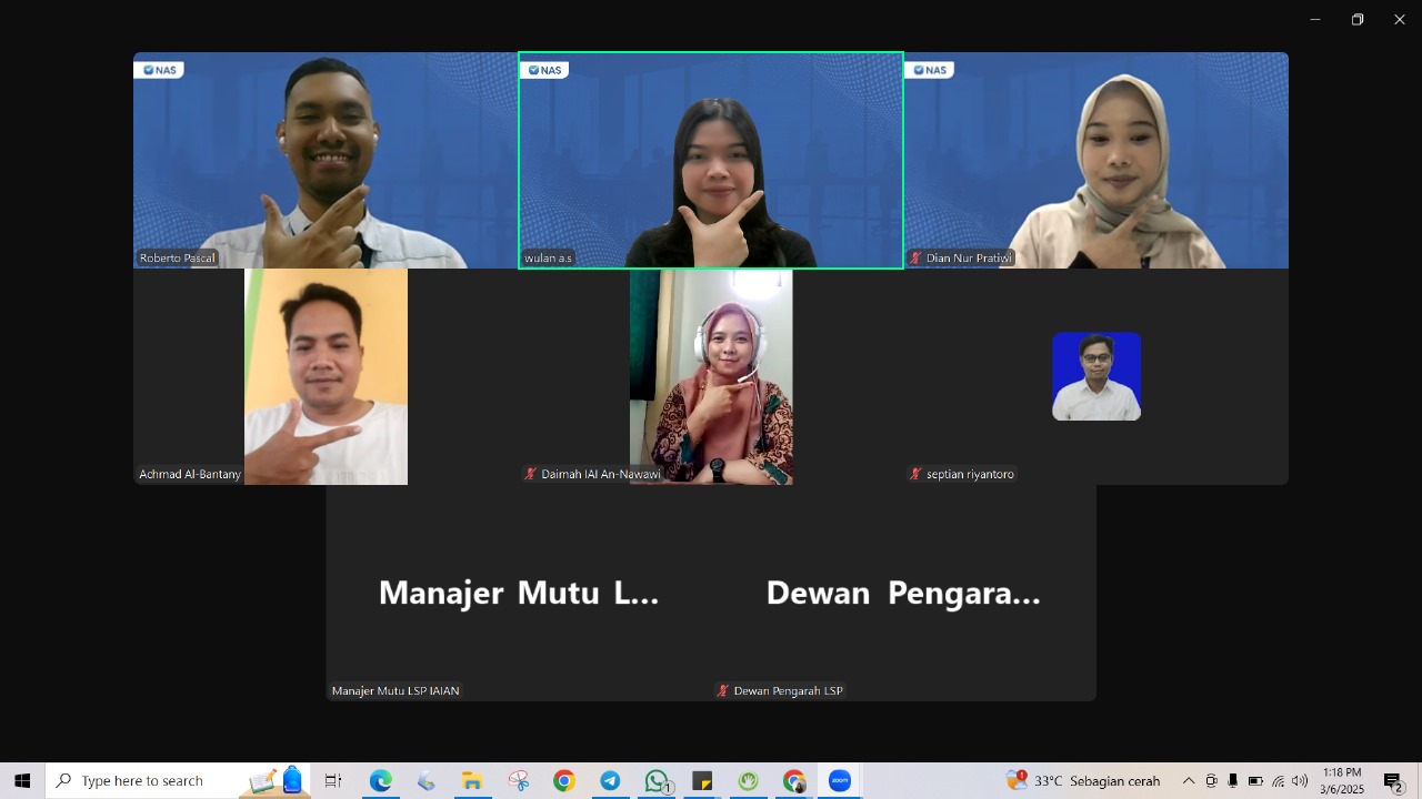Kegiatan ini diharapkan dapat memperluas jangkauan sertifikasi, khususnya bagi peserta dari berbagai wilayah Indonesia yang terhubung melalui platform NAS Online. LSP IAI An-Nawawi Purworejo menggunakan NAS Online untuk efisiensi kegiatan sertifikasi, mulai dari registrasi hingga penerbitan.